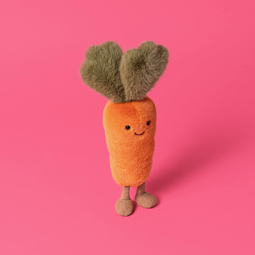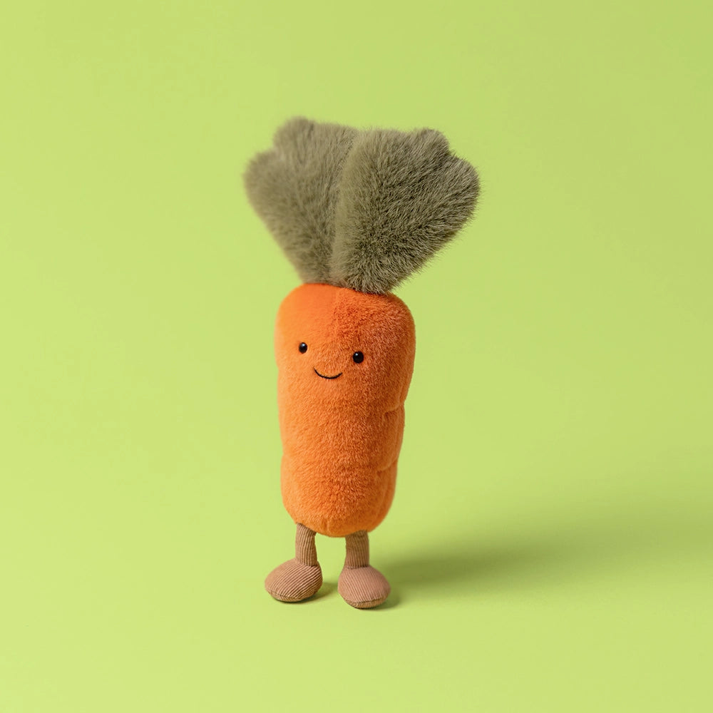 Introducing the Amuseables Carrot Plush—a spirited veggie with a double life! By day, he's mysteriously vanishing (much to Timmy Turtle's suspicion and elaborate disguise efforts). By night, he's living his best life at twilight clog dancing classes, always arriving first and clacking the loudest. Despite his polite attempts to explain his whereabouts, the conspiracy theories persist. Ever the considerate companion, Carrot leaves a strategic decoy behind just to keep the peace. A plush bursting with personality, mischief, and surprisingly impressive dance moves!