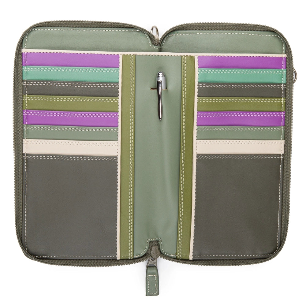 A compact yet spacious purse with room for a smartphone, 16 credit cards, cash and a secure zip pocket for coins. The adjustable shoulder strap makes it perfect for shopping or travel, while a handy silver pen adds the finishing touch!
