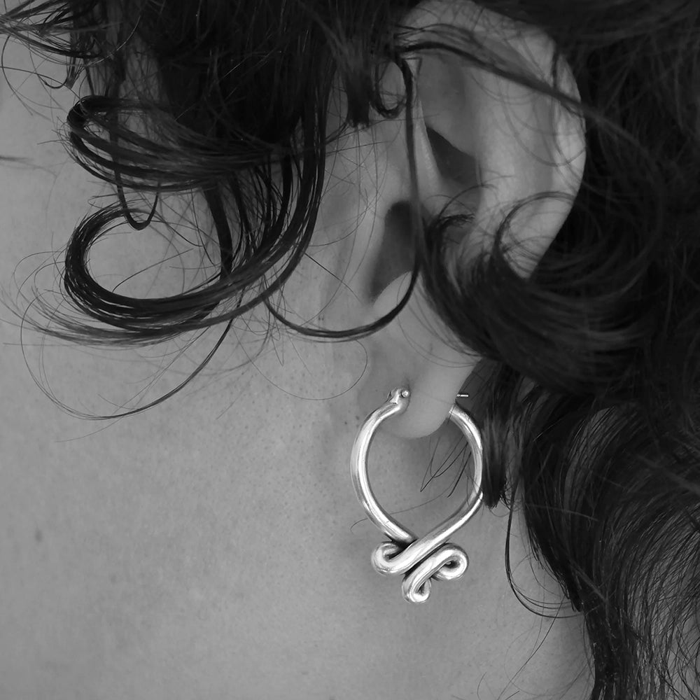 Gracefully curved and effortlessly wearable, these hoop earrings embody refined simplicity. Their featherlight construction makes them ideal for all-day wear, while the fluid design celebrates the natural malleability of metal. A timeless accent that transitions seamlessly from day to evening.