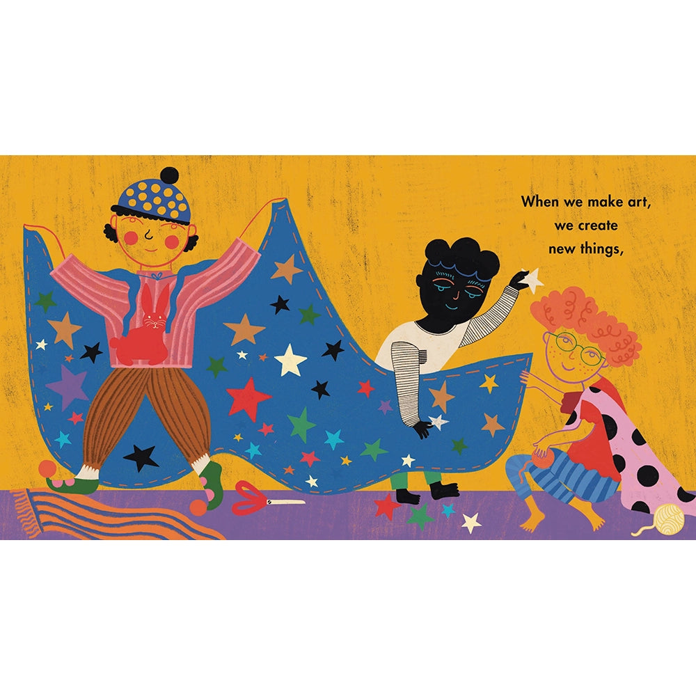 Art is for everyone! From found objects to sidewalk chalk, from homemade instruments to breakdancing, from building with blocks to molding clay, art is natural and healing. Readers will be encouraged by the invitation to create anything, anywhere, with any materials. Inclusive and expansive, Ejaita portrays a wide cast of characters exploring their own feelings and ideas, accompanied by a poignant, yet easily understood, text. This deceptively simple and stunningly composed picture book offers children a sense of what art can be, and the ways in which it adds beauty to our lives.