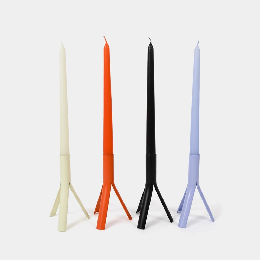 These gorgeous steel candle holders make us think of the the lower half of comic book rockets of the 1940's and 50's. Just add a taper candle and voila - you have your rocket. Enjoy your trip to outer space, while making your physical space look fab.