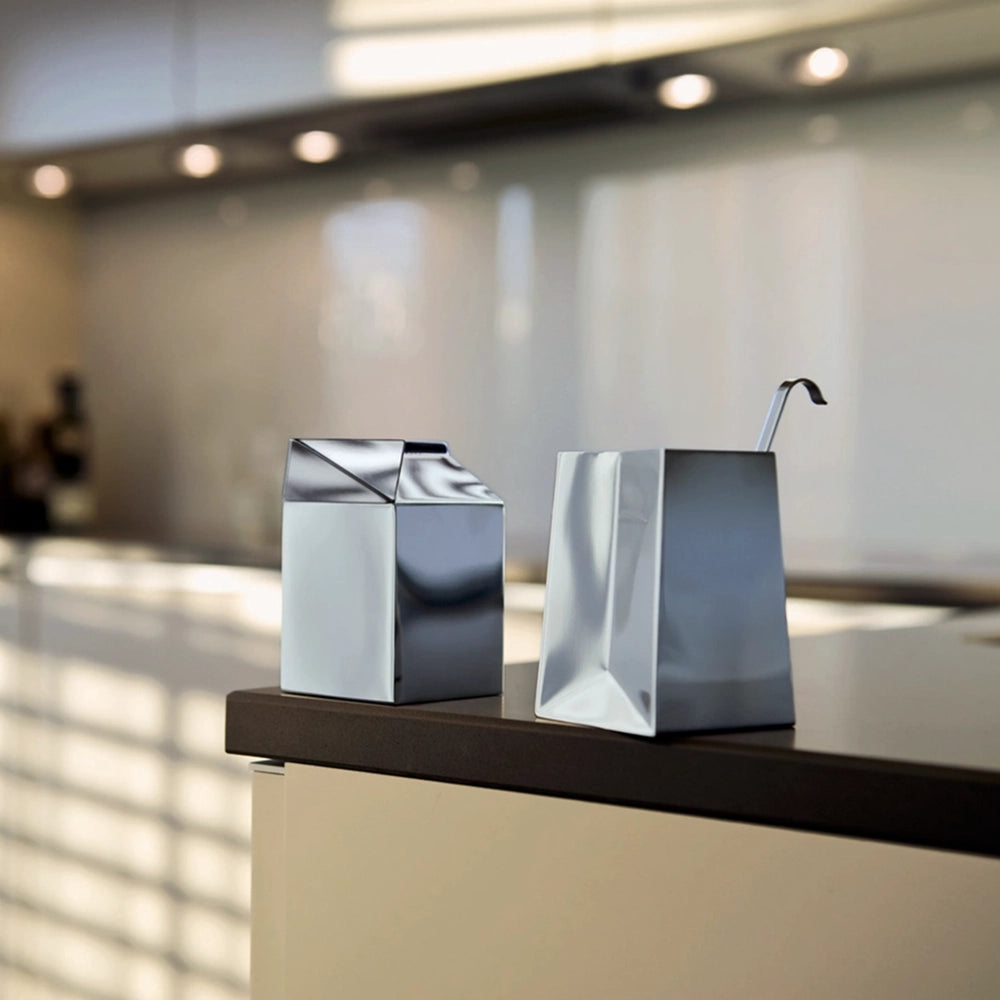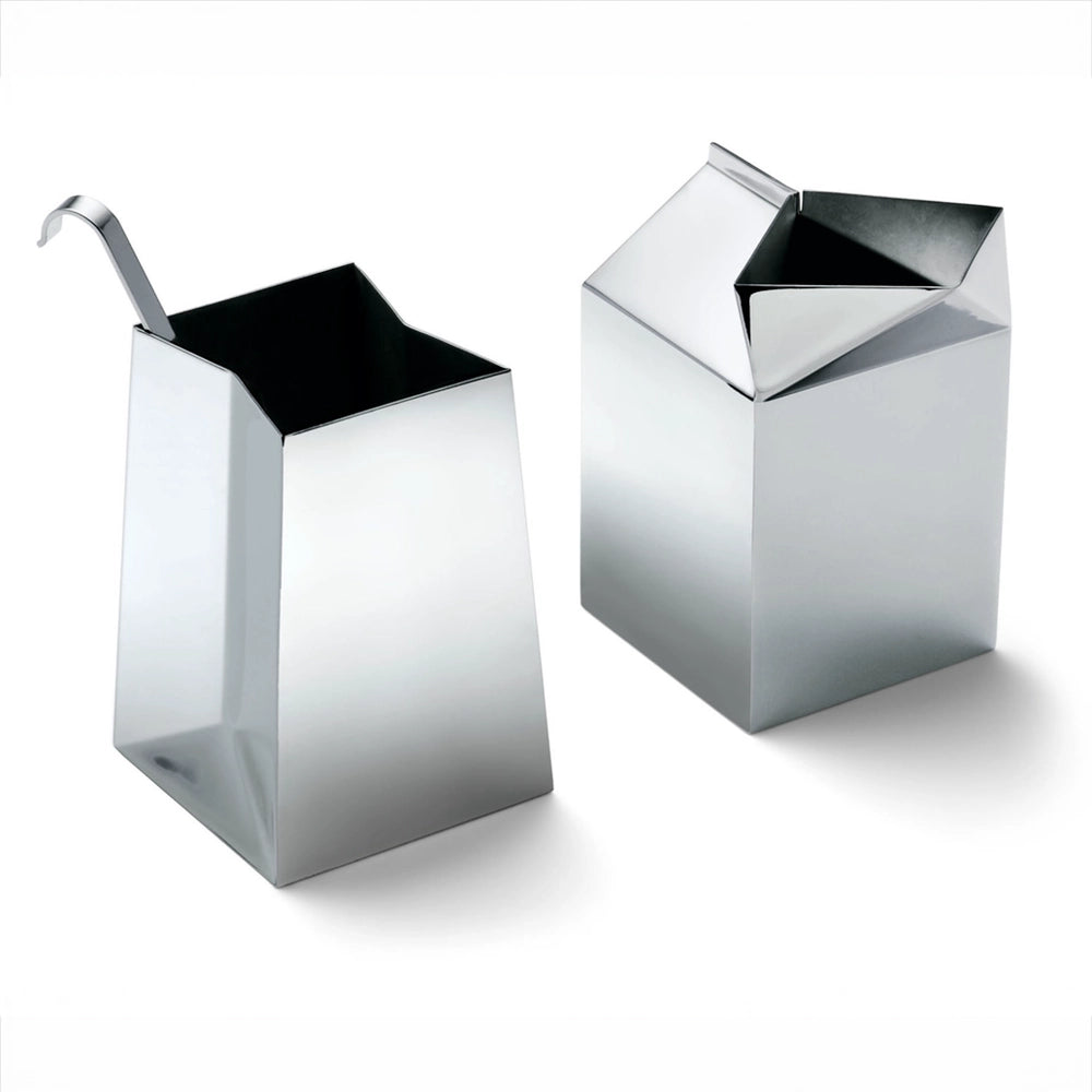 This 3 piece set is the ideal gift for coffee or tea lovers! Designed to resemble a paper bag for the sugar and a milk carton for the milk, this set is make the perfect additonal to your morning ritual for coffee or tea.