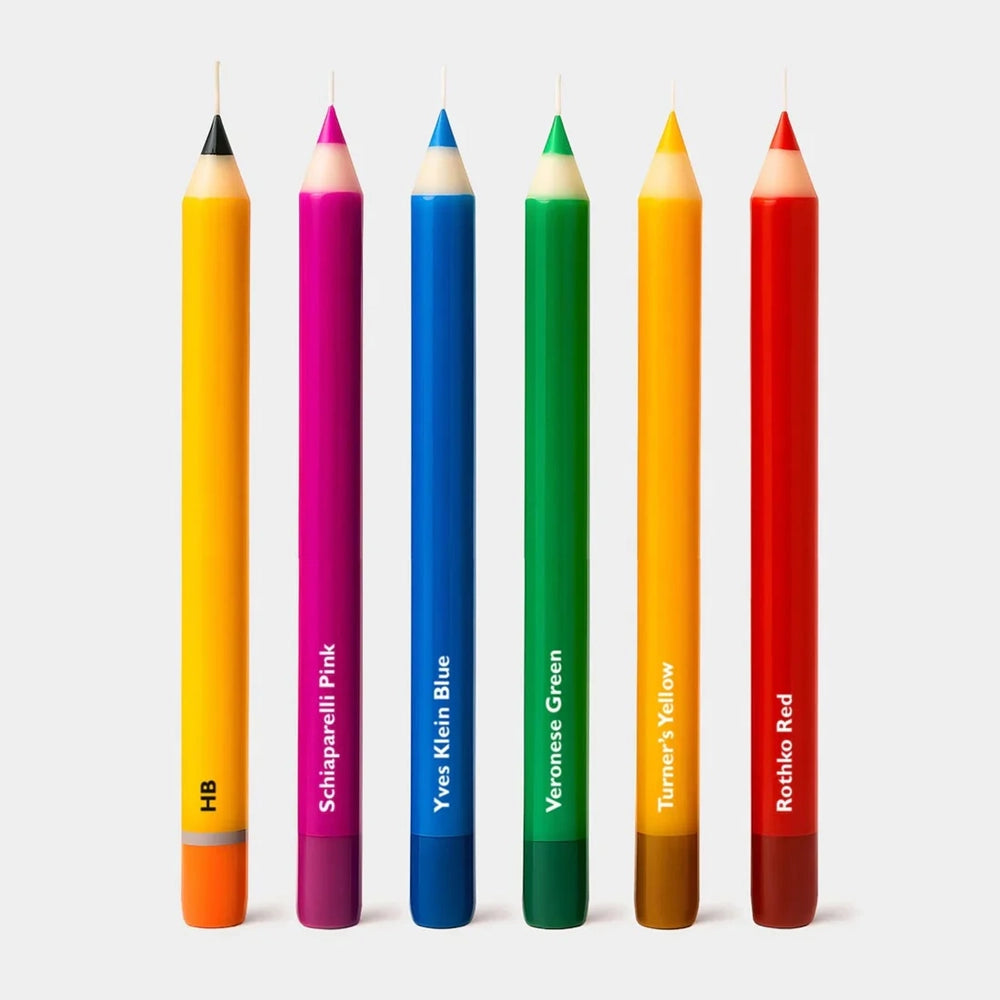 Light up your space with these charming taper candles, each one celebrating a beloved artist and their signature palette. Perfect for art enthusiasts and creative souls, these pencil-shaped wax candles bring a playful tribute to the masters who inspire us.