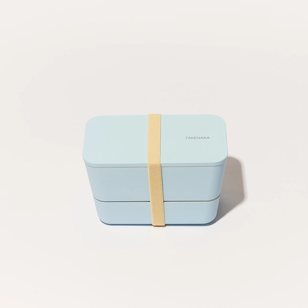 Crafted from eco-friendly, plant-based plastic, this dual-tiered bento box features a convenient elastic band and an internal partition for organized dining.