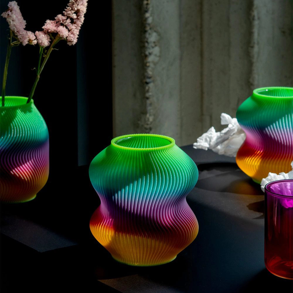 Celebrate individuality with this exclusive Vellen Pride Vase, a limited-edition piece designed to honor Pride Month. Each vase is meticulously 3D-printed with a stunning rainbow gradient, ensuring no two are identical. The undulating surface evokes the graceful flutter of a flag caught in motion, transforming the symbolism of pride into an elegant sculptural form. A sophisticated statement piece that brings both artistry and meaning to any space.