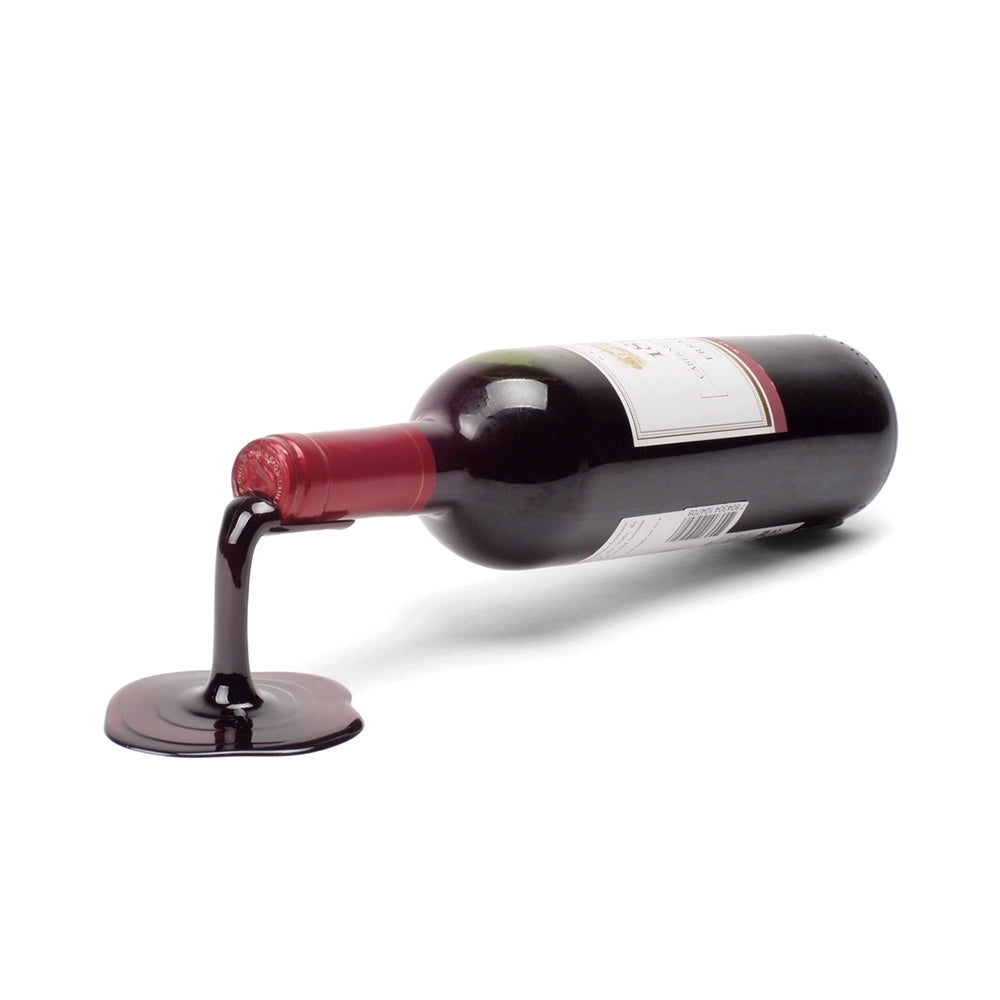 This mini wine rack is a fun and creative way to display your wine. A perfect design that gives your guests a unique surprise. Its a great conversation starter for your kitchen or dining room. Stores your wine at an angle that prevents the cork from drying and the wine from oxidizing. Believable enough to appear just like spilled wine. This set of two includes both red and white-colored wine holders for the right match.