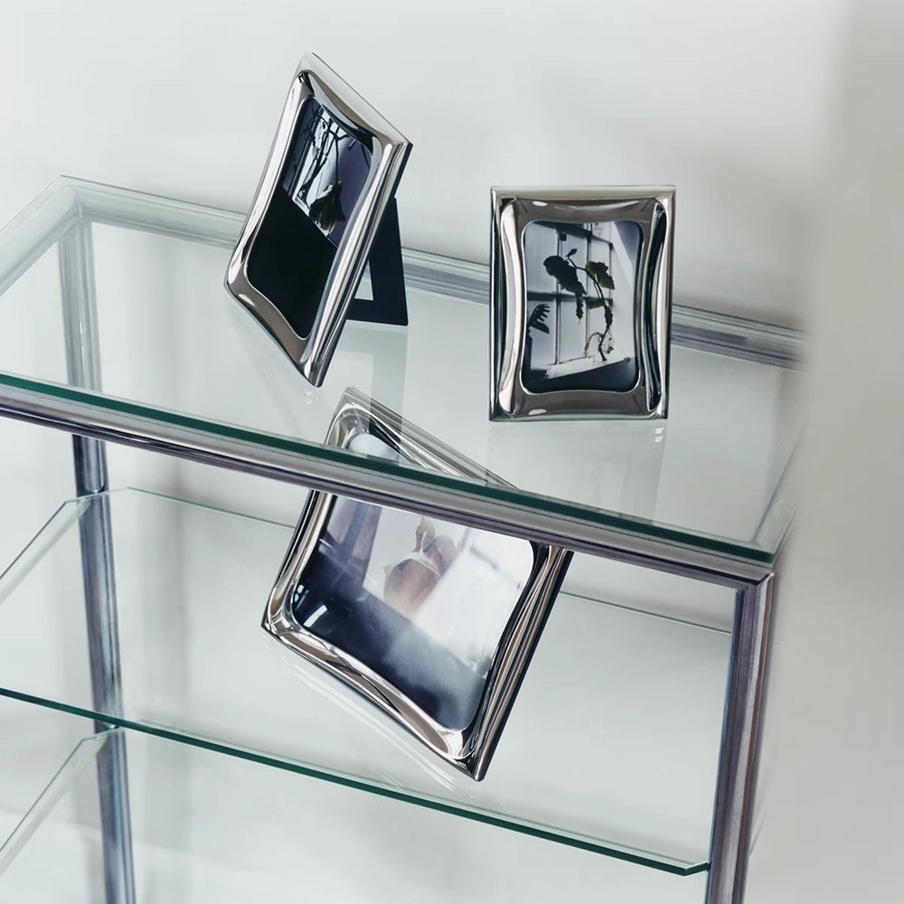 Display your most cherished photographs in refined style with this 4x6" frame from the acclaimed Cobra collection. Its elegant curved silhouette, rendered in lustrous mirror-polished stainless steel, brings contemporary sophistication to any space. An ingenious magnetic closure system provides versatile display options—stand it upright on a desk in portrait or landscape mode, or mount it seamlessly on your wall. A thoughtfully designed piece that elevates everyday moments into gallery-worthy presentations.