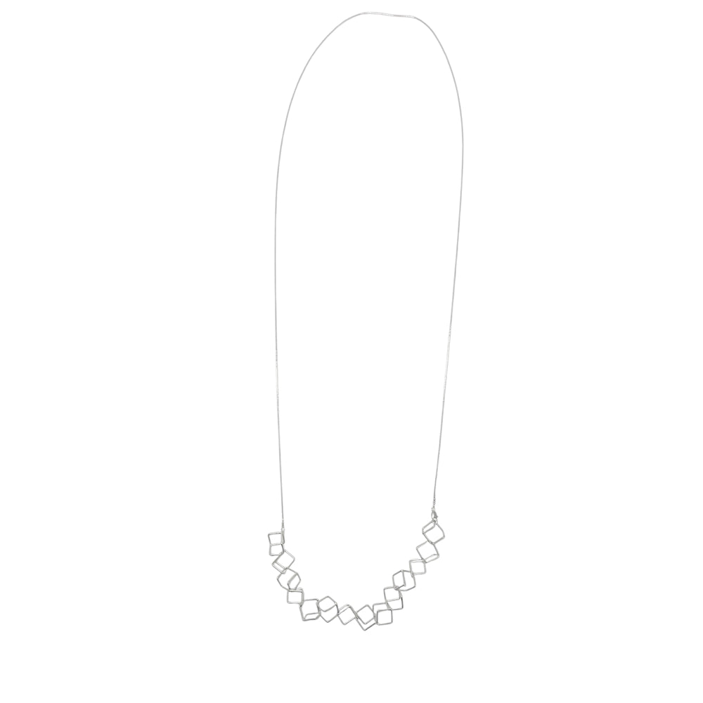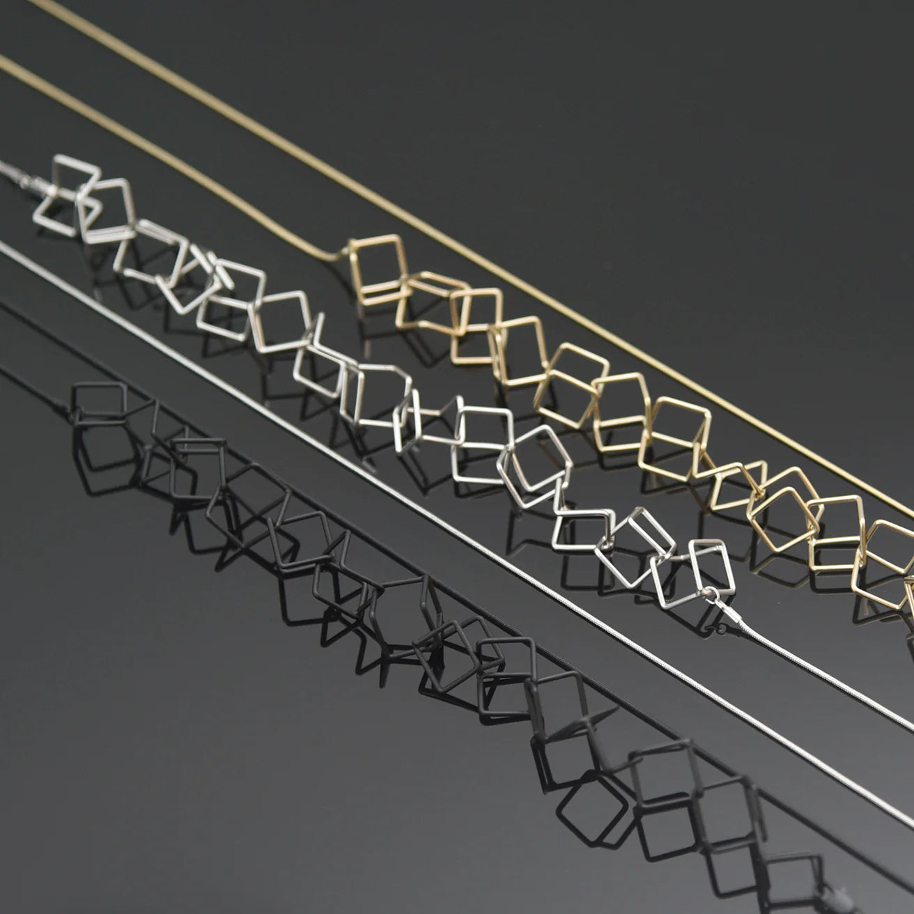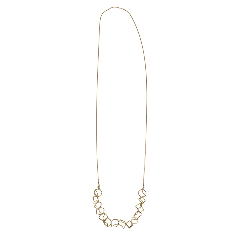 This chunky linked necklace is as new version of one of our most popular designs. Intricately made out of many linked hollow cubes, this necklace can be worn as one long piece or looped for a choker-style piece.