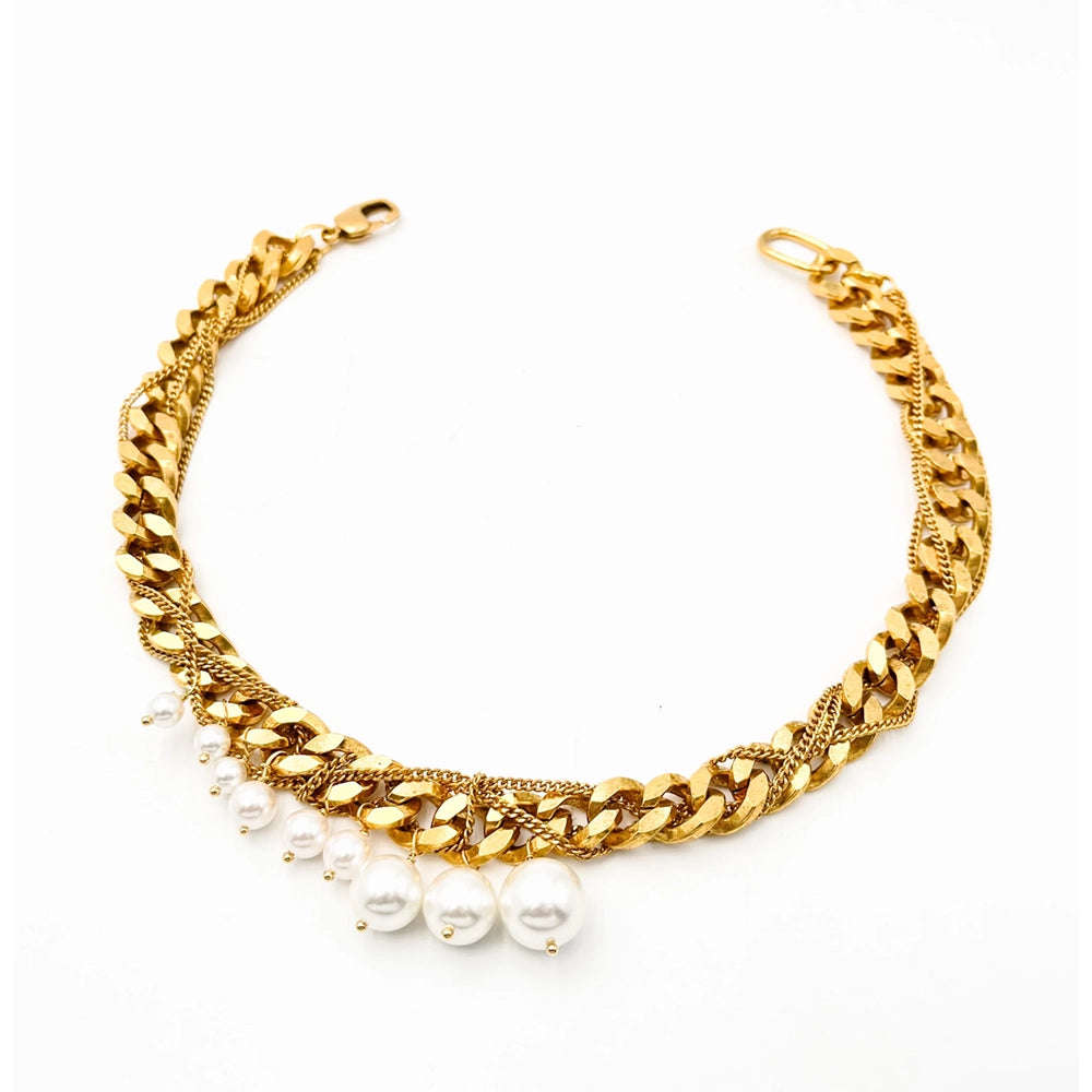This Pearl Necklace is made of gilded brass and plated with fine gold. Slightly patinated, this bold and heavy necklace will make a statement and elevate any outffit.