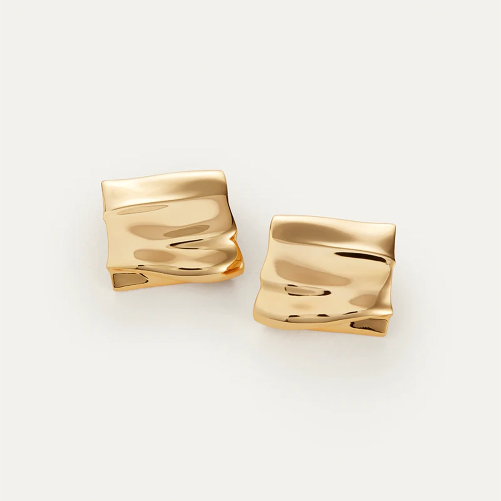 A lightweight, clip-on alternative to a large and sculptural button earring. These mid-sized tile earrings mirror a sand dune shaped by natural winds. Perfect for making a statement. Finished in high-polish silver.