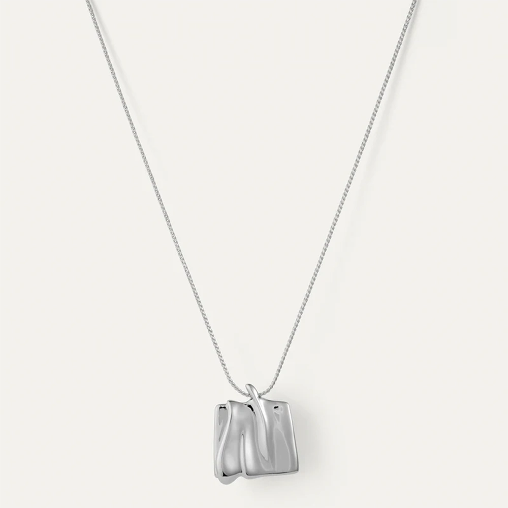 Mirroring a sand dune shaped by natural winds, this large organic square pendant glides along a silver chain. This design includes a shortening ring, making it easy to adjust and wear at 18" or 20.