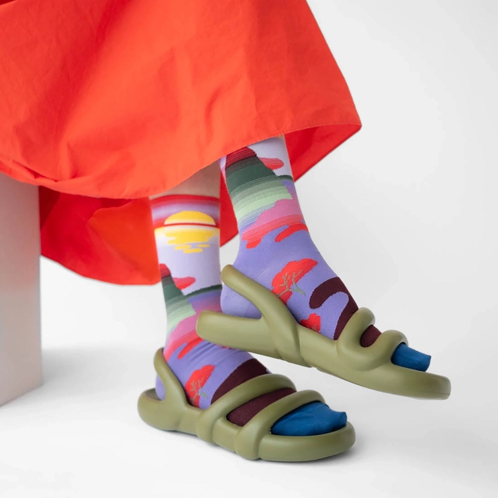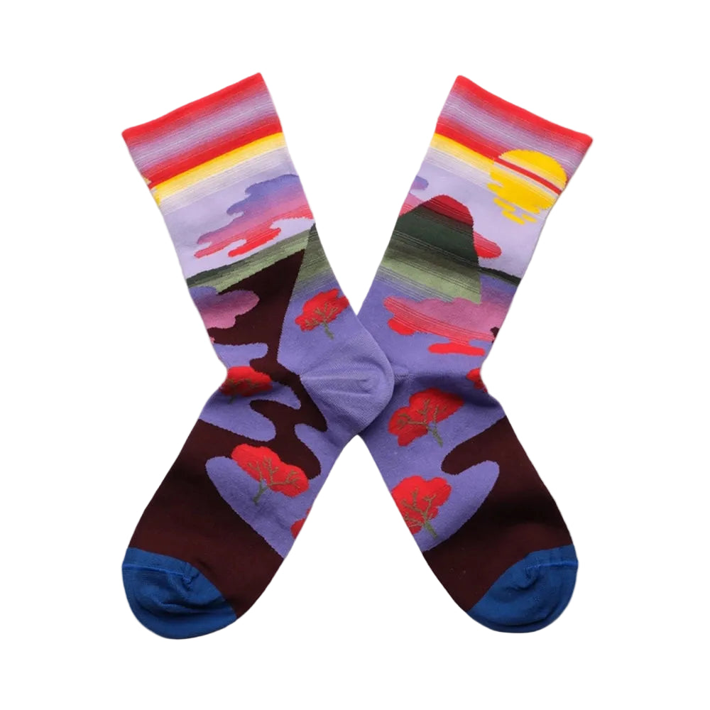 Crafted by the esteemed French hosiery house Bonne Maison, these mid-calf socks blend luxurious Egyptian cotton with reinforced elastane threading for enduring comfort and shape retention. The sophisticated purple landscape pattern adds understated elegance to your everyday wardrobe. Designed for practicality, they withstand gentle machine washing at 30-40°C, making them an effortless addition to your rotation of refined essentials.
