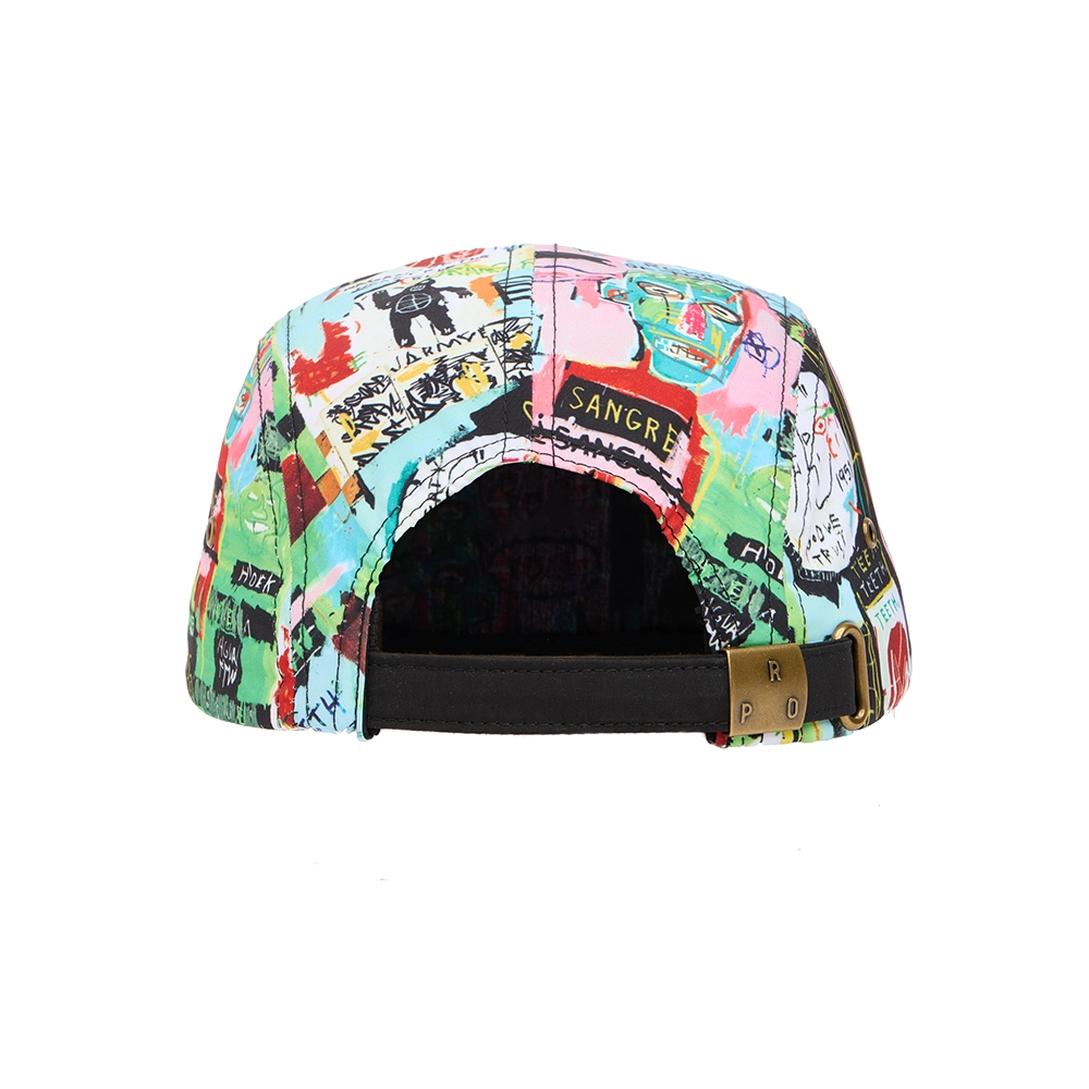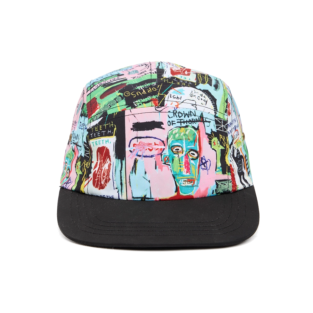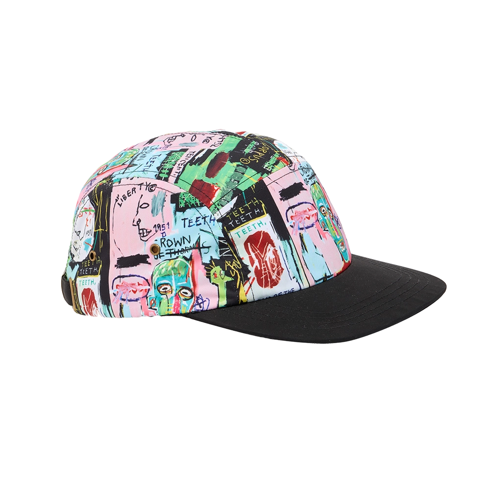 Crafted from premium cotton twill, this five-panel cap showcases an all-over design inspired by Jean-Michel Basquiat's iconic "In Italian" artwork. A refined accessory that merges contemporary art with everyday wear.