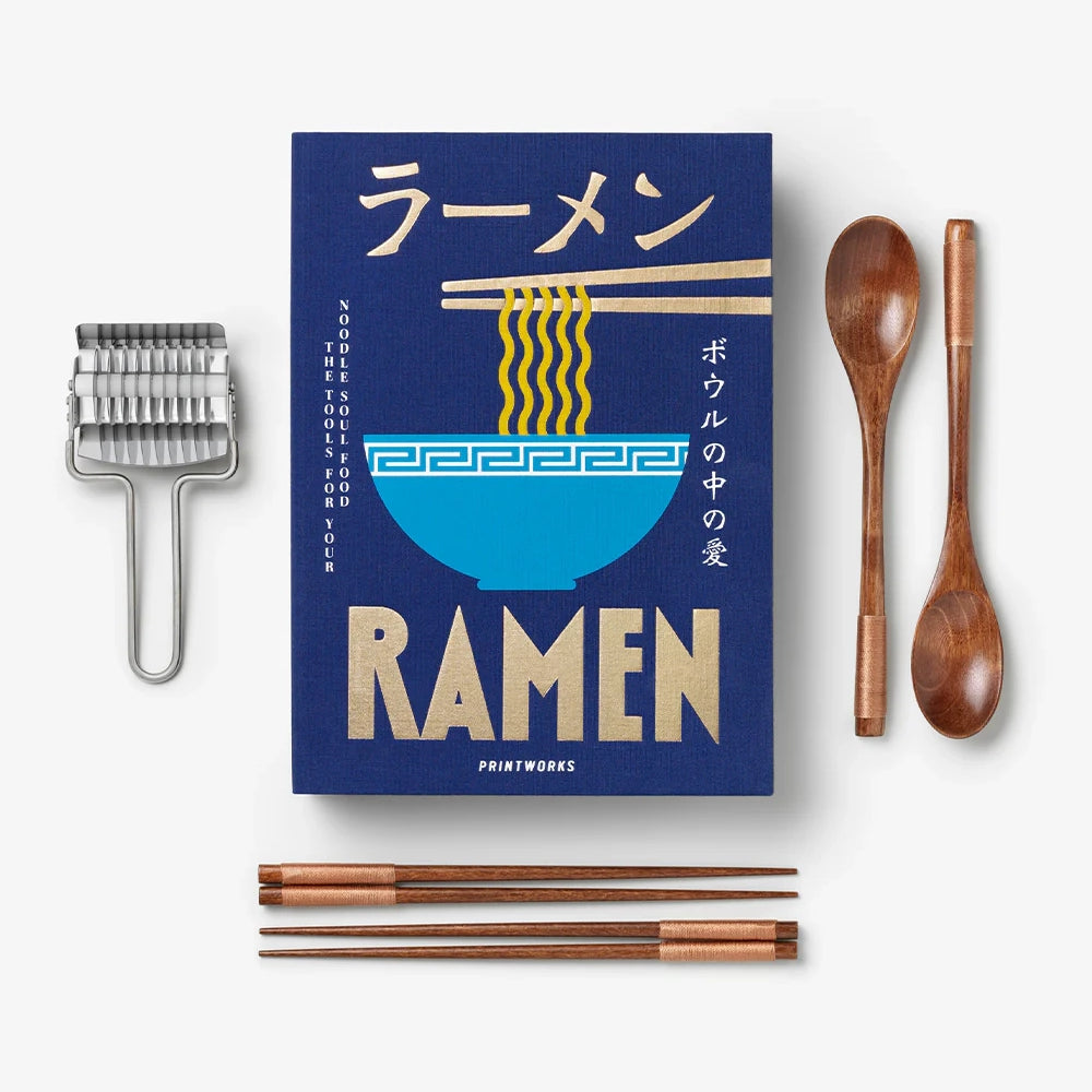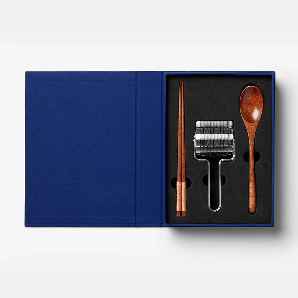 Discover the essential kit for a cozy ramen night at home – a refined toolbox in a book-like box, ideal as a thoughtful gift or for upgrading your own kitchen rituals. When not in use, it adds a decorative touch to your shelf, fitting right in alongside your cookbooks.