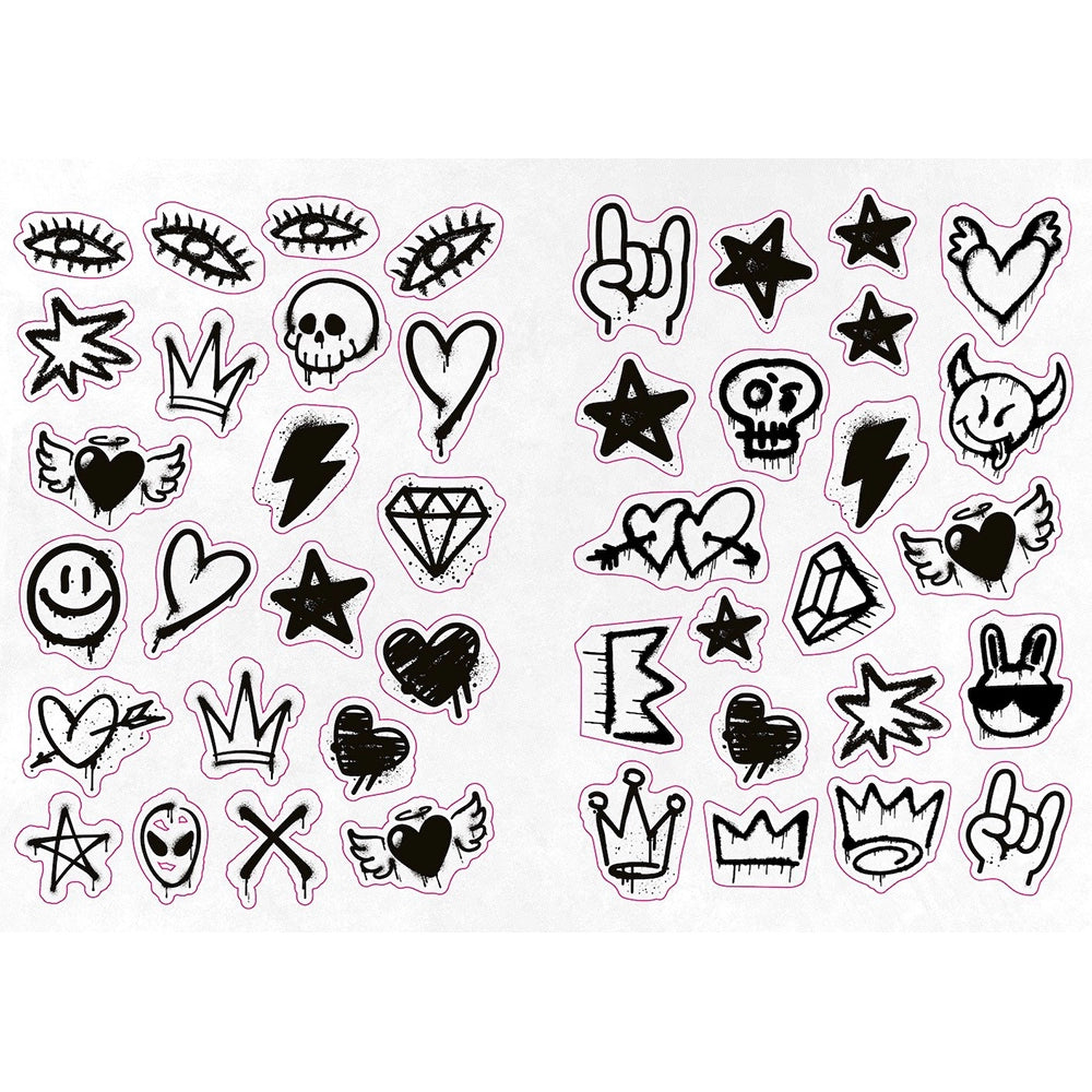 The Graffiti Alphabet Sticker Book offers over a thousand stickers in forty distinctive graffiti lettering styles, allowing you to effortlessly spell out any message and apply it wherever you choose. Whether personalizing a junk journal, laptop, skateboard, or phone, these vibrant street art letters provide endless creative possibilities. Featuring full alphabets in styles such as wildstyle, blockbuster, bubble, throw-up, and stencil, you can craft any expression with ease.