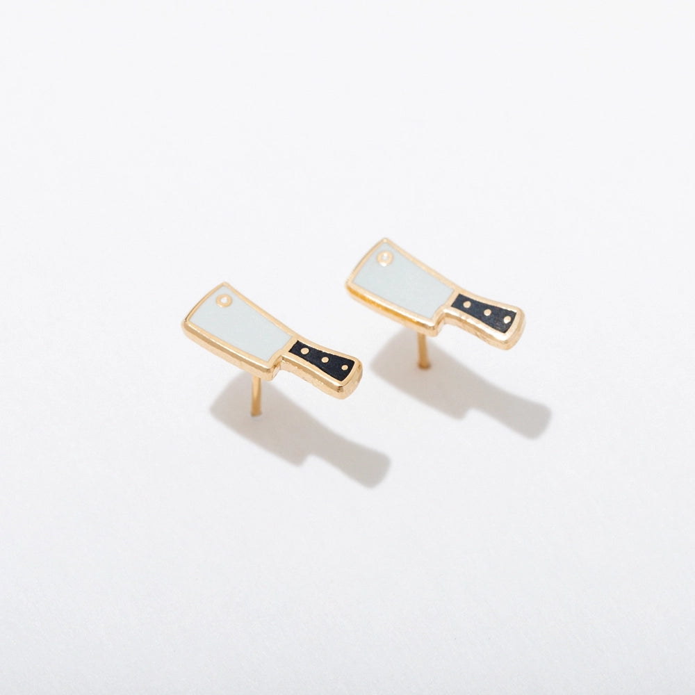 Whether you’re channeling Sweeney Todd or serving up culinary flair, these studs are to die for. Crafted from 18k gold-plated iron with enamel detail, they bring a sharp edge to your style.