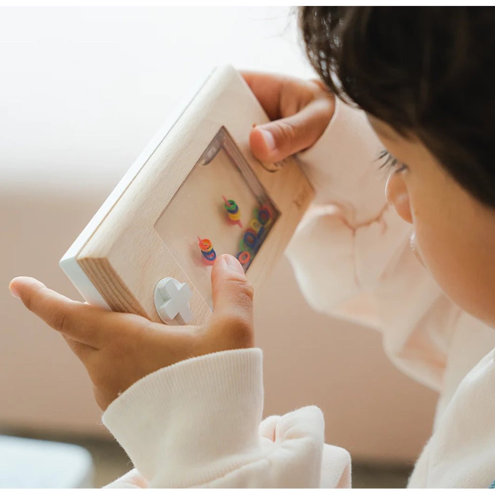 Basically a wooden Gameboy, but with no screen or yucky batteries. Get your Wakka game on with this sleek wooden version of the old-school retro water game. Use your two manual controllers (i.e. your hands) to press the buttons to try and get all of the rainbow hoops onto the two spikes.