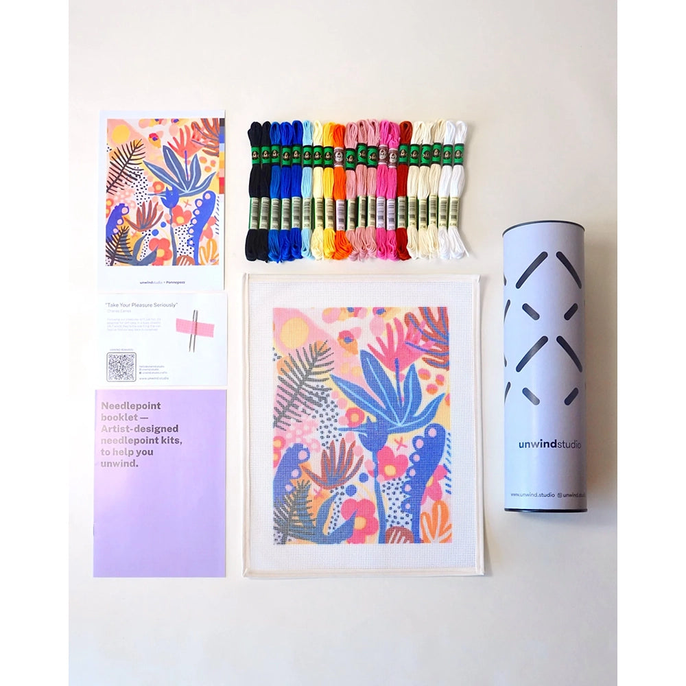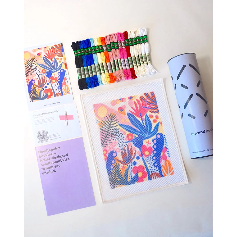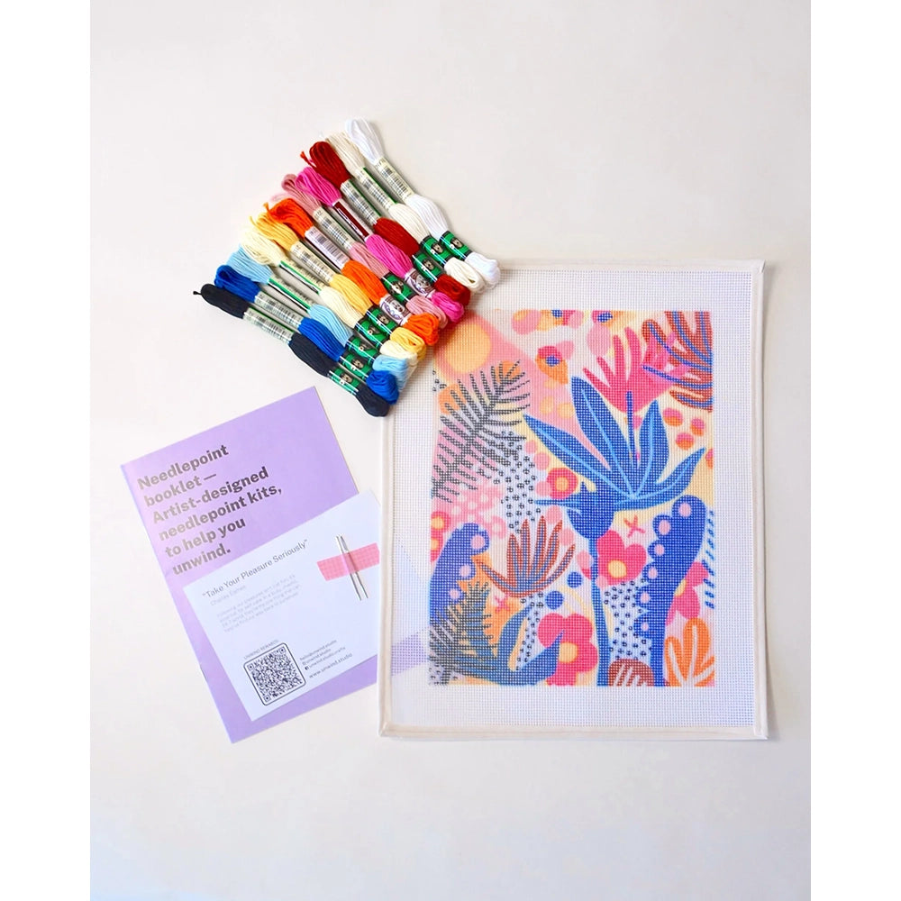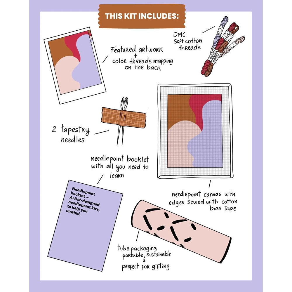 Originally created by Ponnopozz using acrylic gouache, the Camille Needlepoint Kit showcases a captivating blend of neutral colors and gentle brush strokes, resulting in an exquisite and soothing needlepoint project.