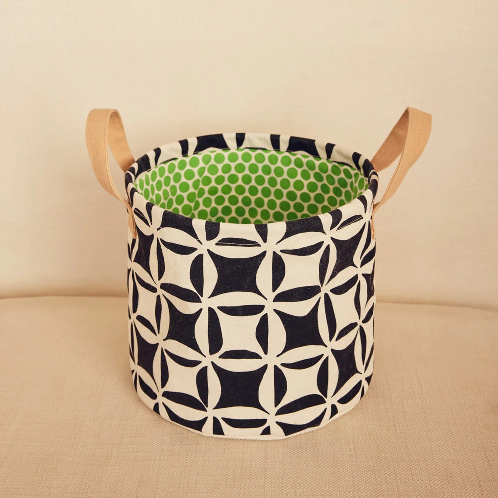 With fun colors and quirky patterns, the Dusen Dusen Canvas Storage Bin is a small bin with big potential. Collapsable. this bin is great for small spaces and makes it easy to store away.
