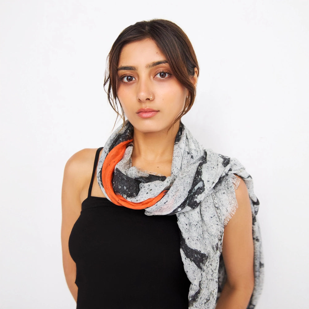 This Volcano Silk Scarf is lightweight and perfect for the spring or late summer nights.